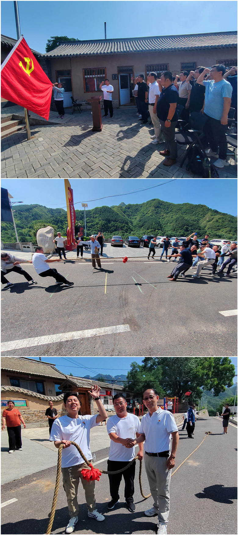 結(jié)構(gòu)所黨支部與顧家臺黨支部開展聯(lián)合黨日活動。顧家臺村支部書記顧錦成同志帶領(lǐng)全體黨員在黨旗下莊嚴(yán)宣誓,重溫入黨誓詞。隨后,兩個支部的黨員開展拔河聯(lián)誼活動。
