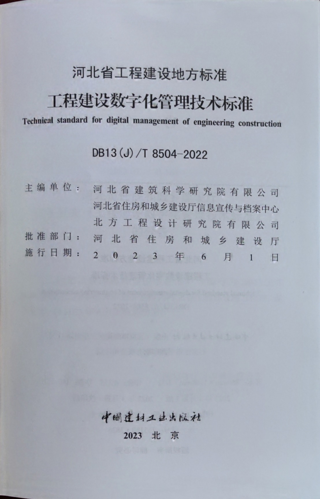 近日,由河北省建筑科學研究院有限公司、河北省住房和城鄉建設廳信息宣傳與檔案中心和北方工程設計研究院有限公司共同主編的《工程建設數字化管理技術標準》(DB13(J)/T8504-2022)已完成印刷,將于2023年6月1日起實施。