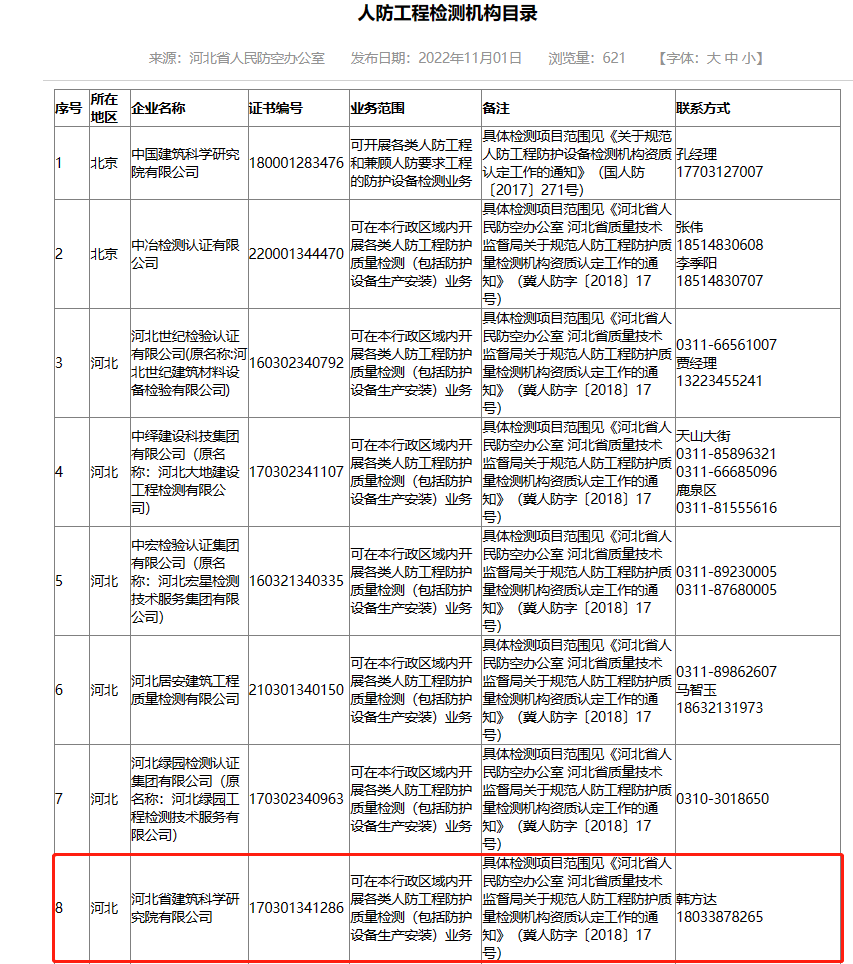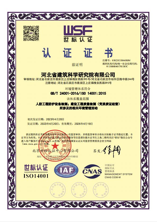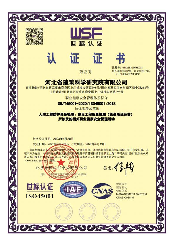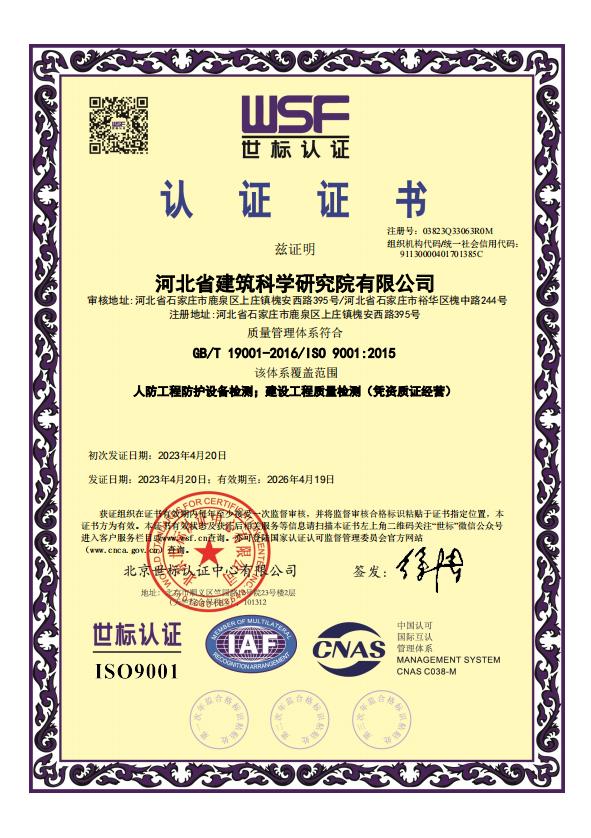 河北省建筑科學研究院有限公司人防工程檢測機構(gòu)證明