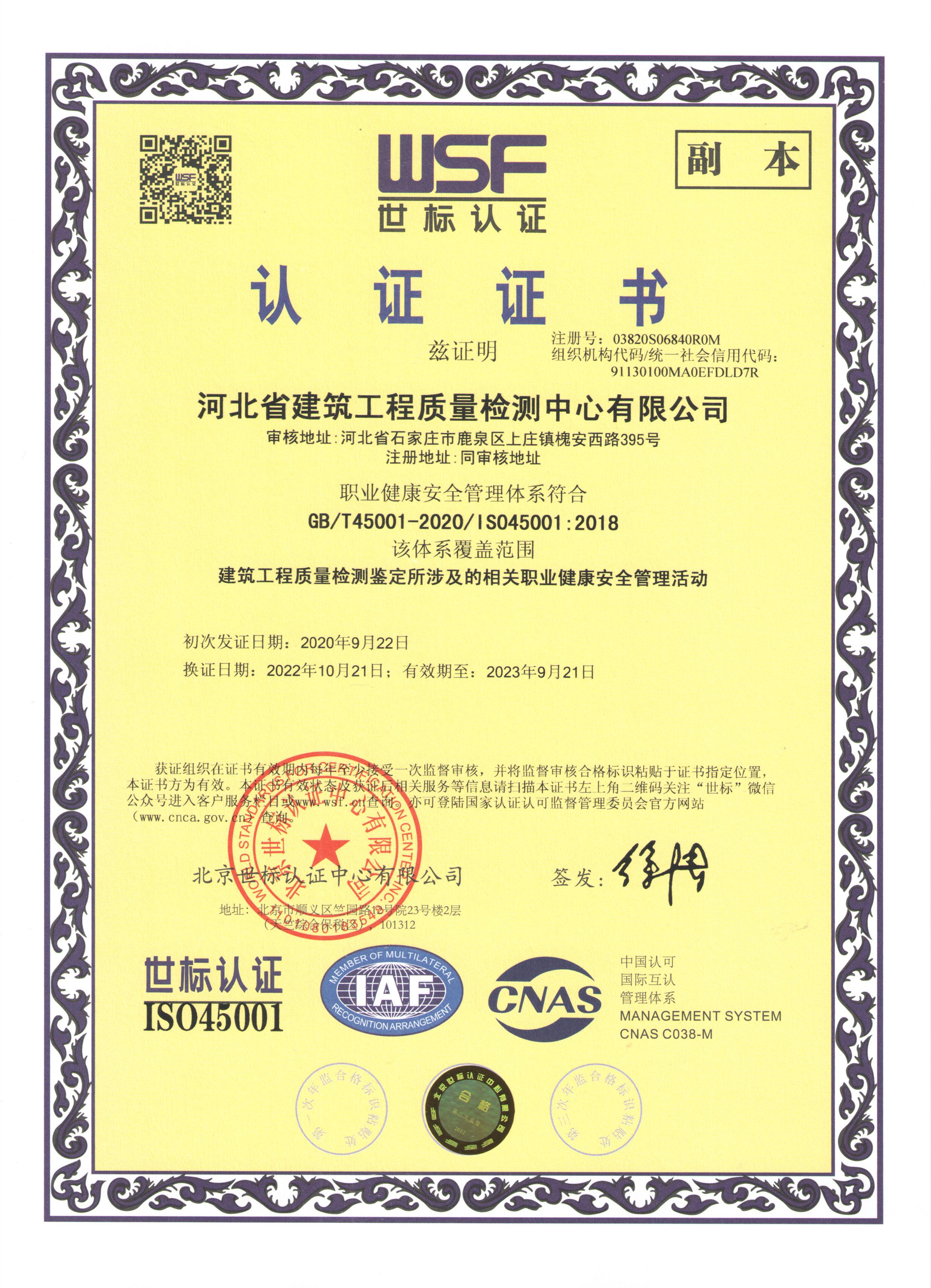 河北省建筑科學研究院有限公司認證證書3